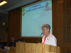Nach der Präsentation der Berichte und ihre darauf folgende Diskussion hat die Präsidentin der Kamillianischen Familien, Frau Isabel Calderon aus Kolumbien, das Wort. Sie berichtet von der bemerkenswerten Entwicklung der Kamillianischen Familien weltweit seit der Approbation des Statutes beim Generalkapitel 2001. Es gibt die Kamillianischen Familien in 27 Ländern mit über 3.000 Mitgliedern. Frau Calderon berichtet von den Aktivitäten in diesen sechs Jahren, von den Schwierigkeiten und Herausforderungen, sowie von den zukünftigen Projekten.